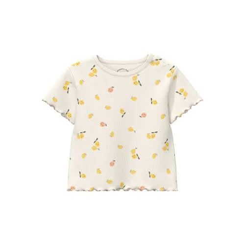 Dit zachte meisjes T-shirt met korte mouwen van s.Oliver is speciaal gemaakt voor de allerkleinsten. De ribstof in een ecru kleur voelt soepel aan op de huid en rekt licht mee, zodat je baby zich vrij kan bewegen. De all-over print en het subtiele borduursel vormen samen een speels geheel, terwijl de golvende afwerking langs de boorden zorgt voor een nette, verzorgde afwerking.Comfortabele details voor elke dag Gemaakt van 95% katoen en 5% elastaan voor een zachte touch en extra stretch Ronde hals met drukknopen opzij zodat het T-shirt gemakkelijk over het hoofd gaat Ribstof die mooi aansluit zonder strak te zitten Regular fit, ideaal voor dagelijks dragen in de babyperiode All-over print met borduursel voor een rustig en speels geheel Korte, rechte mouwen die veel bewegingsvrijheid geven Ecru basiskleur die rustig oogt en goed combineert met andere kledingPraktisch in gebruik bij baby en new bornDit shirt is ontworpen voor de maatboog baby en new born. Door de drukknopen aan de zijkant van de halslijn kun je het T-shirt snel aan- en uittrekken, ook als je baby ligt. De rekbare ribstof blijft prettig zitten, of je kindje nu slaapt, speelt of onderweg is.Betrouwbare stijl van s.Olivers.Oliver staat bekend om kleding die er verzorgd uitziet en prettig draagt in het dagelijks leven. In de kinderlijn wordt dat vertaald naar doordachte pasvormen, zachte materialen en praktische details. Zo krijg je een T-shirt waar je baby zich comfortabel in kan bewegen en waar jij elke dag makkelijk naar grijpt.Een praktische basic met subtiele details die moeiteloos past in de dagelijkse garderobe van je kleintje.