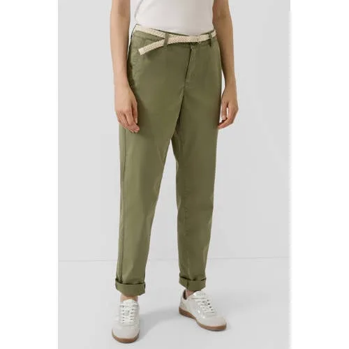 Voor een ontspannen maar verzorgde look is deze kakigroene chino broek voor dames een veelzijdige basis in je garderobe. De broek heeft een mid rise taille, lange pijpen en een regular fit die smal toeloopt naar de enkels. De kakigroene kleur en subtiele wassing geven een rustige, moderne uitstraling die je gemakkelijk combineert met je favoriete tops en schoenen.Comfortabele pasvorm met nette details Gemaakt van katoen-stretch (98% katoen / 2% elastine) voor een soepele stof die licht meebeweegt Mid rise taille en regular fit voor een comfortabele pasvorm rond heupen en bovenbenen Tapered leg: smal toelopende pijpen voor een modern silhouet Rits- en knoopsluiting voor een klassieke chino look Steekzakken aan de voorkant en zakken achter, aangevuld met sierzakken Ceintuur meegeleverd voor een afgewerkte, vrouwelijke look in de taille Effen kakigroen met garment dye wassing voor een iets geleefde, zachte kleurDagelijks draagbaar en makkelijk te stylenDeze broek past goed bij je dagelijkse outfits in het voorjaar en de rest van het jaar. Combineer met een T-shirt en sneakers voor een casual dag, of met een blouse en loafers voor naar kantoor. De regular lengte maakt de broek geschikt voor allerlei soorten schoenen.Stijlvolle basics van s.Olivers.Oliver staat bekend om toegankelijke mode met een fijne pasvorm voor elke dag. De collecties zijn ontworpen met aandacht voor draagcomfort en een moderne, tijdloze uitstraling. Met deze chino kies je voor een betrouwbare basic waar je vaak naar zult grijpen.Een veelzijdige broek die gemakkelijk meebeweegt met jouw drukke leven.