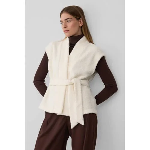 Dit vest van s.Oliver heeft korte mouwen en rechte mouwen Het is gemaakt van teddy en heeft een openvallende hals De striksluiting maakt het makkelijk dicht te doen en het ceintuur maakt het af