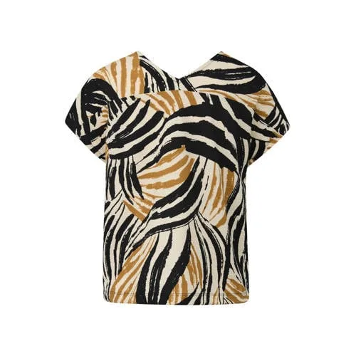 Deze geprinte dames top met V-hals van s.Oliver is een basic met net wat extra detail. De combinatie van beige met zwart en de all-over print geeft een speelse look, terwijl de rustige kleuren het geheel toch makkelijk te combineren maken. De soepele jersey met lichte stretch sluit prettig aan zonder strak te vallen.Verfijnde details voor elke dagRelaxed fit die luchtig om het lichaam valt voor een comfortabel gevoelV-hals die het decolleté subtiel accentueertVleermuismouwen met oversized schouders voor een moderne, nonchalante uitstralingGestructureerde stof die het oppervlak een subtiele textuur geeftBeige/zwart kleurpalet met all-over print, makkelijk te combineren met denim of zwartKorte mouwen, ideaal voor het voorjaar en zomerse dagenGeschikt voor casual gelegenheden, van werk tot een dagje stadCasual stylen in het dagelijks levenDeze top uit de Daily collectie is gemaakt voor alledaagse momenten. Draag de top op een lichte jeans en sneakers voor een relaxte look, of combineer met een zwarte broek en loafers voor een meer verzorgde outfit. De luchtige pasvorm maakt de top ook prettig op warmere dagen.s.Oliver, vertrouwd in je garderobes.Oliver staat bekend om kleding die goed aansluit op het dagelijkse leven. De collecties zijn eigentijds en draagbaar, met aandacht voor pasvorm en details. Met deze top voeg je een praktische en gemakkelijk te combineren optie toe aan je garderobe.Een veelzijdige keuze voor verschillende dagelijkse outfits.