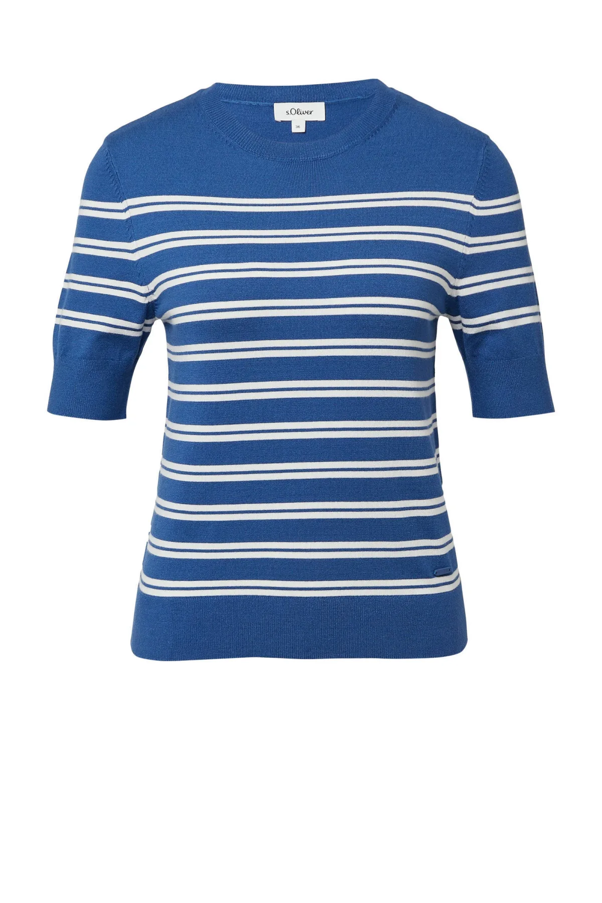Design: Geribbelde kraag; Materiaal: Knitwear; Halstype: Ronde hals; Motief: Gestreept; Extra's: All-over patroon, Met textuur; Pasvorm: Normale pasvorm; Armlengte: Kwartmouw; Lengte: Normale lengte