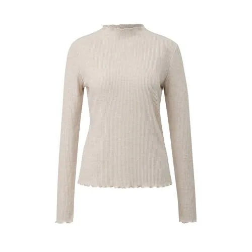 Shirt met lange mouwen van s.Oliver RED LABEL voor dames;Look: effen, gebreide look;Pasvorm: Slim fit;Applicatie: Labelstitching;Hals: hooggesloten;Mouwvorm: lange mouwen;Mouwboord: Volant;Rompzoom: Volant;Materiaalverwerking: Ribtricot