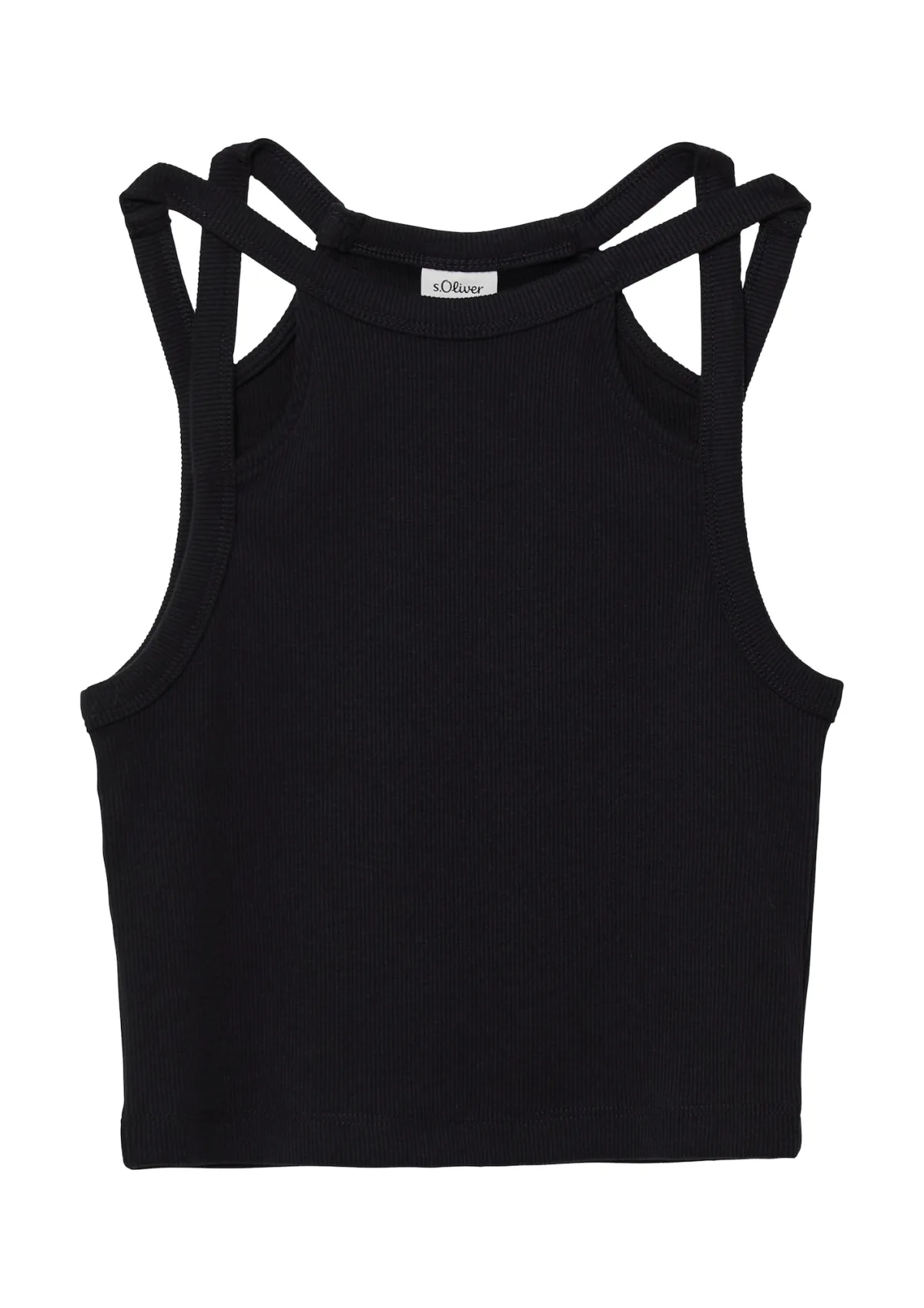 Design: Gevoerde zoom/rand; Materiaal: Jersey; Halstype: Ronde hals; Motief: Effen; Details: Cut-outs; Extra’s: Op staal naden; Pasvorm: Slanke pasvorm; Armlengte: Mouwloos; Lengte: Normale lengte