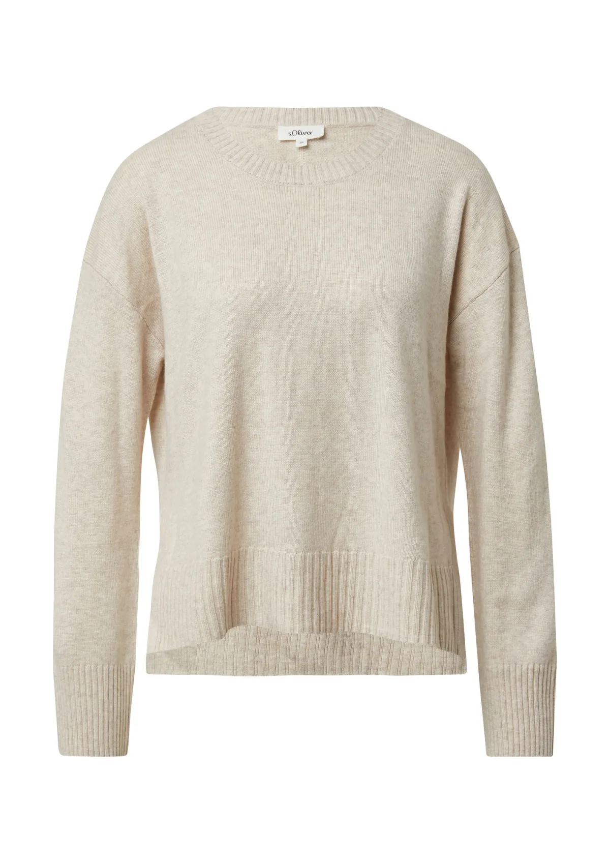 Design: Geribbelde kraag, Zijdelingse inkepingen, Overcut schouder; Materiaal: Knitwear; Halstype: Ronde hals; Motief: Mélange; Extra's: Fully fashioned, Voelt zacht aan; Pasvorm: Losse pasvorm; Armlengte: Lange mouw; Lengte: Normale lengte