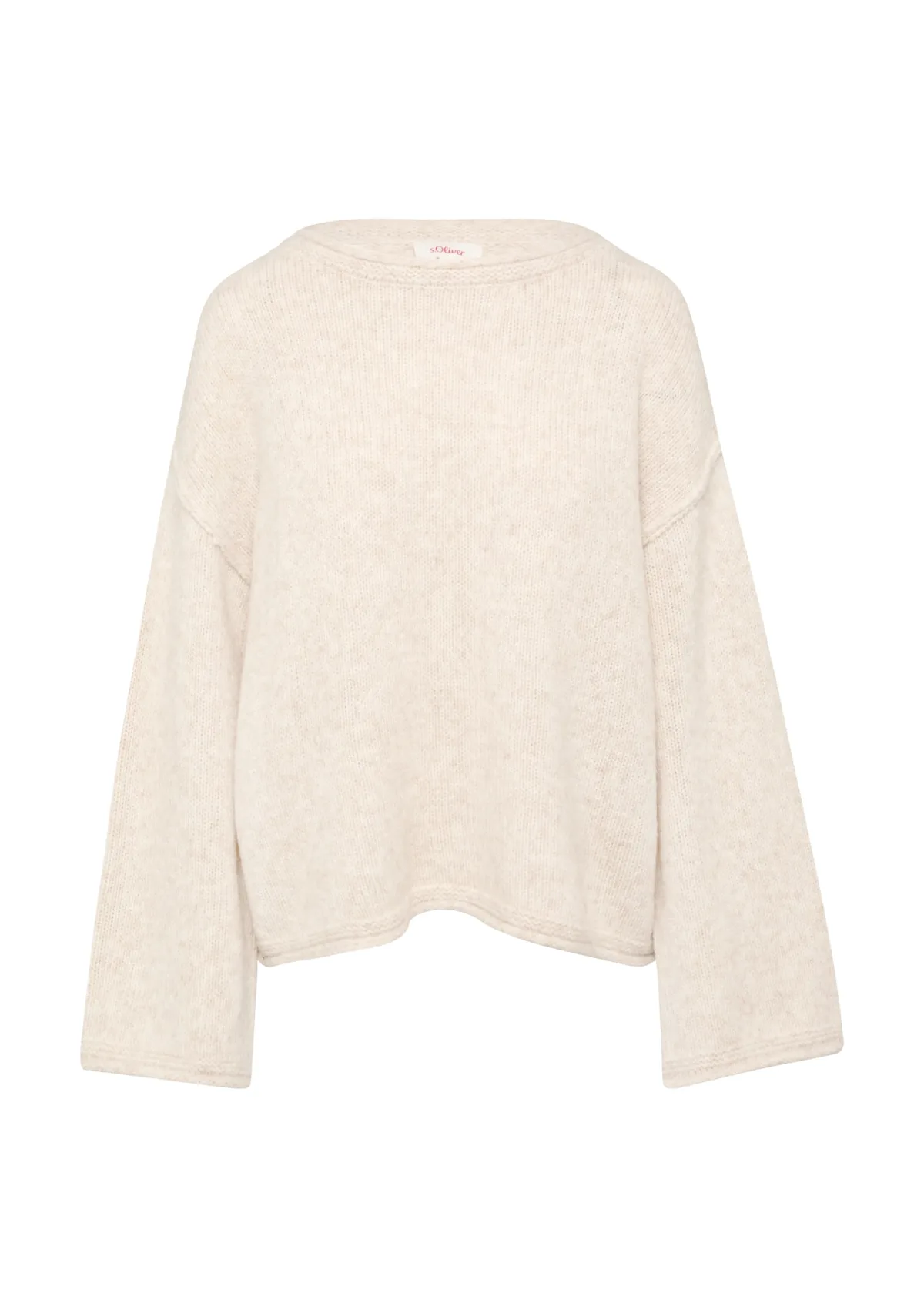 Design: Rechte zoom, Overcut schouder; Materiaal: Knitwear; Halstype: Boothals; Motief: Mélange; Details: Mesh; Extra's: Fully fashioned, Voelt zacht aan; Pasvorm: Losse pasvorm; Armlengte: Lange mouw; Lengte: Normale lengte