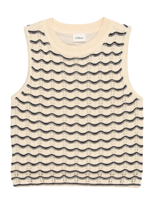 Design: Geribbelde kraag, Rechte zoom, Geribd ceintuurtje; Materiaal: Knitwear; Halstype: Ronde hals; Motief: Gestreept; Details: Mesh; Extra's: All-over patroon, Fully fashioned, Met textuur; Pasvorm: Slanke pasvorm; Armlengte: Mouwloos; Lengte: Normale lengte
