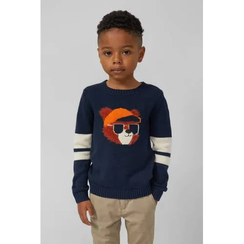 Deze trui van s.Oliver heeft lange mouwen en een ronde hals. De trui is gemaakt van katoen en acryl, heeft een gebreid dessin, geribde boorden en een print in meerdere kleuren.