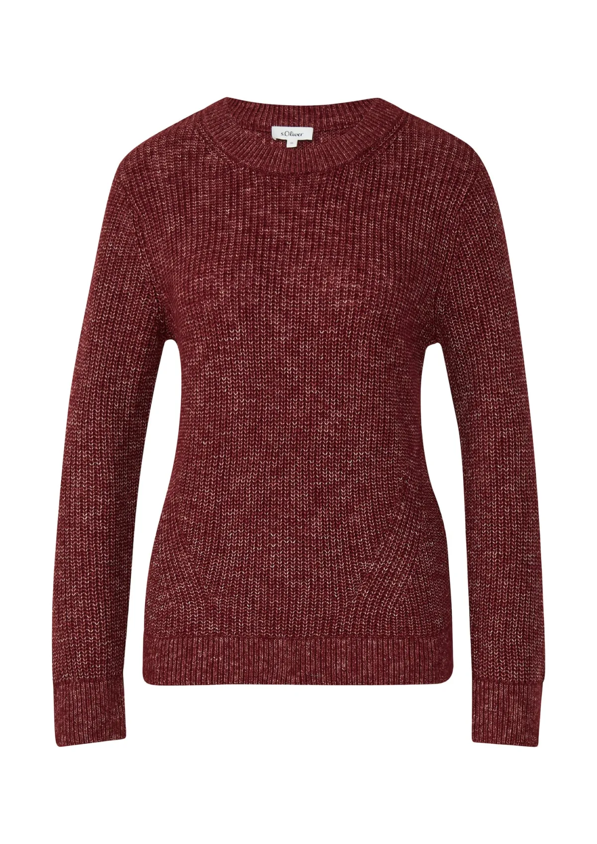 Design: Geribbelde kraag, Geribd ceintuurtje, Geribbeld gebreid; Materiaal: Knitwear; Halstype: Ronde hals; Motief: Mélange; Extra's: Glitterend, Patroon gebreid; Pasvorm: Normale pasvorm; Armlengte: Lange mouw; Lengte: Normale lengte