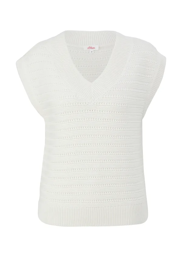 Design: Geribbelde kraag, Geribd ceintuurtje; Materiaal: Knitwear; Halstype: V-hals; Motief: Effen; Extra's: Met textuur, Voelt zacht aan; Pasvorm: Normale pasvorm; Armlengte: Mouwloos; Lengte: Normale lengte