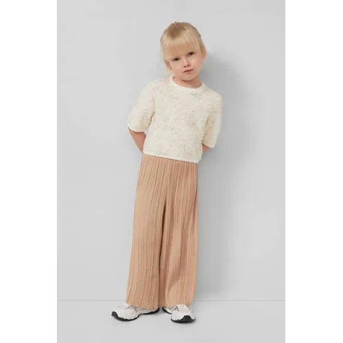 Deze s.Oliver gebreide trui meisjes combineert het comfort van knitwear met speelse details. De trui heeft korte mouwen en een regular fit, waardoor de stof soepel valt en de trui makkelijk over een T-shirt of jurk gedragen kan worden. Het laagjeseffect met zachte tule en de glinsterende paillettenapplicatie met bloemenmotief zorgen voor een speels accent, zonder dat het te druk oogt.Speelse details in een comfortabele knit Gebreide trui met laagjeseffect en fijne tule voor een gelaagde look Bloemenapplicatie met pailletten aan de voorkant voor een lichte glans Ronde hals met geribde rand die comfortabel aansluit Korte mouwen met oversized schouders voor extra bewegingsvrijheid Ribboorden aan hals, mouwen en zoom zorgen dat alles mooi op zijn plek blijft Gemaakt van 60% katoen en 40% acryl, prettig voor dagelijks gebruik Fijn gebreide stof die zacht aanvoelt op de huidIdeaal voor alledaags en gekleed combinerenDeze trui past goed bij een jeans of legging voor school, maar kan ook gecombineerd worden met een rok voor een nettere gelegenheid. Door de korte mouwen is de trui geschikt voor tussenseizoenen en kan er op koelere dagen makkelijk een vest of jasje overheen.s.Oliver als vertrouwde basiss.Oliver staat bekend om kleding die goed draagbaar is in het dagelijkse leven. De ontwerpen zijn doordacht, met aandacht voor pasvorm en details, zodat kinderen zich vrij kunnen bewegen en er verzorgd uitzien. Deze trui sluit daar goed bij aan.Een sfeervolle, comfortabele knit met speelse accenten die bij veel outfits past.