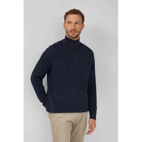Deze trui van s.Oliver heeft een regular fit en een opstaande kraag. De trui is gemaakt van 100% katoen, heeft een gebreide textuur, een korte rits en geribde boorden.