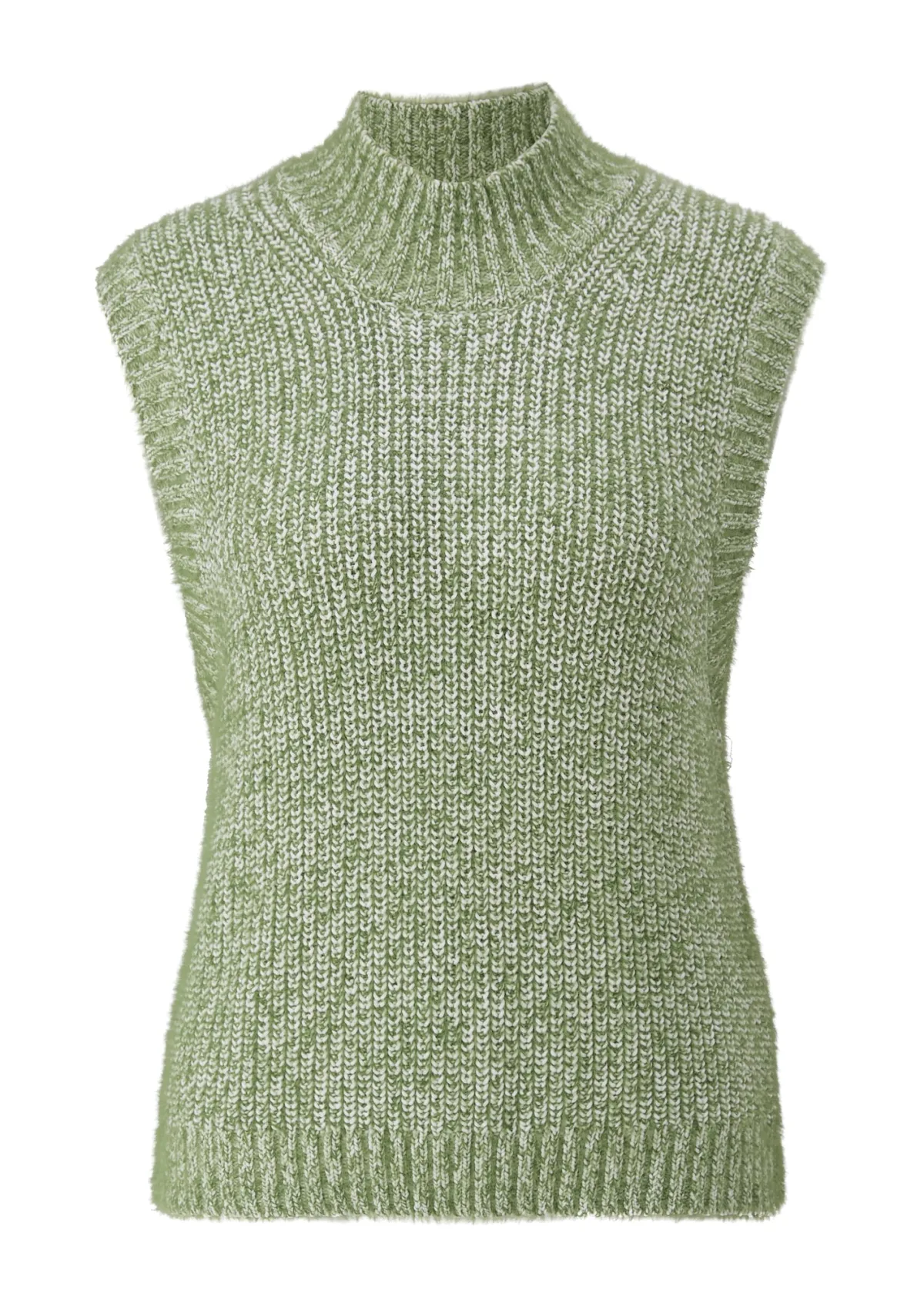 Design: Geribbelde kraag, Staande kraag; Materiaal: Knitwear; Halstype: Opstaande kraag; Motief: Mélange; Extra's: Fully fashioned, Voelt zacht aan; Pasvorm: Slanke pasvorm; Armlengte: Mouwloos; Lengte: Normale lengte