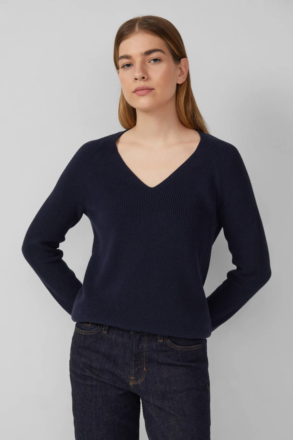 Deze trui van s.Oliver heeft een V-hals en lange rechte mouwen. De trui is grof gebreid, gemaakt van katoen en acryl en voelt prettig aan.
