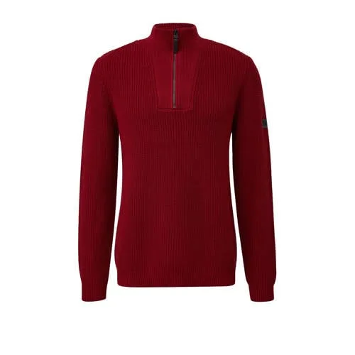 Deze trui van s.Oliver heeft een regular fit en lange mouwen. De trui is gemaakt van 100% katoen en heeft een opstaande kraag met een korte rits. Geribde boorden en grof gebreid.