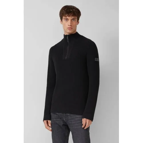 Deze trui van s.Oliver heeft een regular fit en lange mouwen. De trui heeft een opstaande kraag en een korte rits, gemaakt van 100% katoen. Grof gebreid met geribde boorden.
