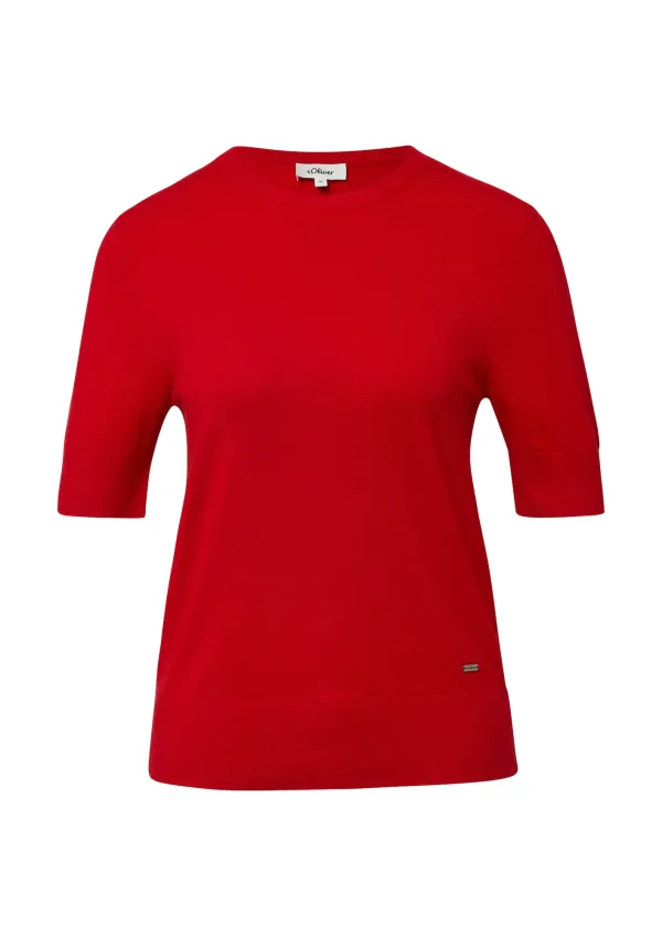 Design: Gevoerde zoom/rand, Geribd ceintuurtje; Materiaal: Knitwear; Halstype: Ronde hals; Motief: Effen; Extra’s: Label patch/label flag, Gladde stof; Pasvorm: Normale pasvorm; Armlengte: Kwartmouw; Lengte: Normale lengte