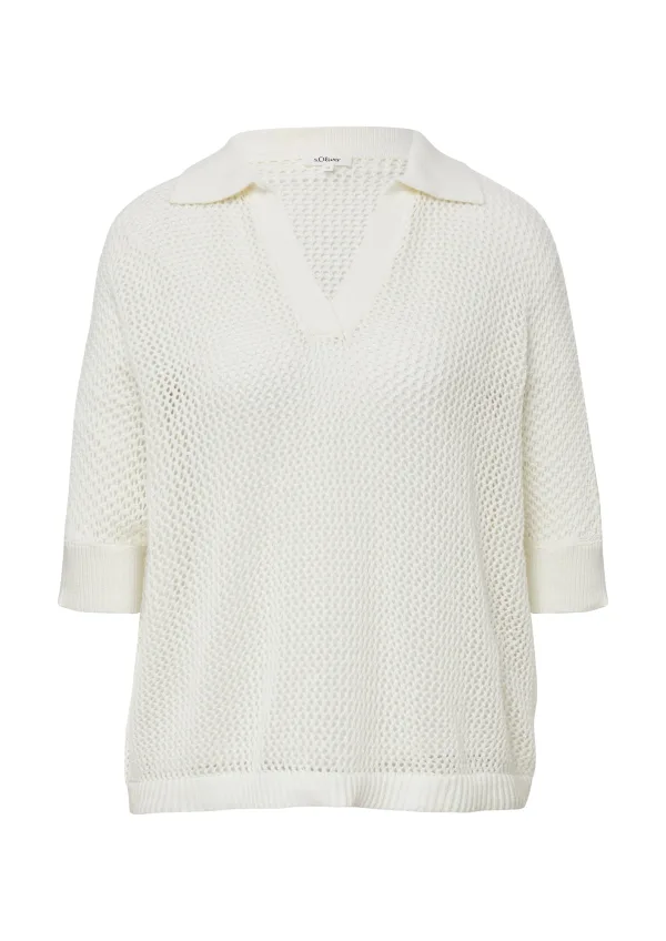 Design: Geribd ceintuurtje; Materiaal: Knitwear; Motief: Effen; Details: Mesh; Extra's: Visnet brei, Voelt zacht aan; Pasvorm: Wijde pasvorm; Armlengte: Halve mouw; Lengte: Normale lengte