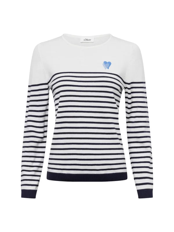 Materiaal: Knitwear; Halstype: Ronde hals; Motief: Gestreept; Details: Borduursels; Pasvorm: Normale pasvorm; Armlengte: Lange mouw; Lengte: Normale lengte