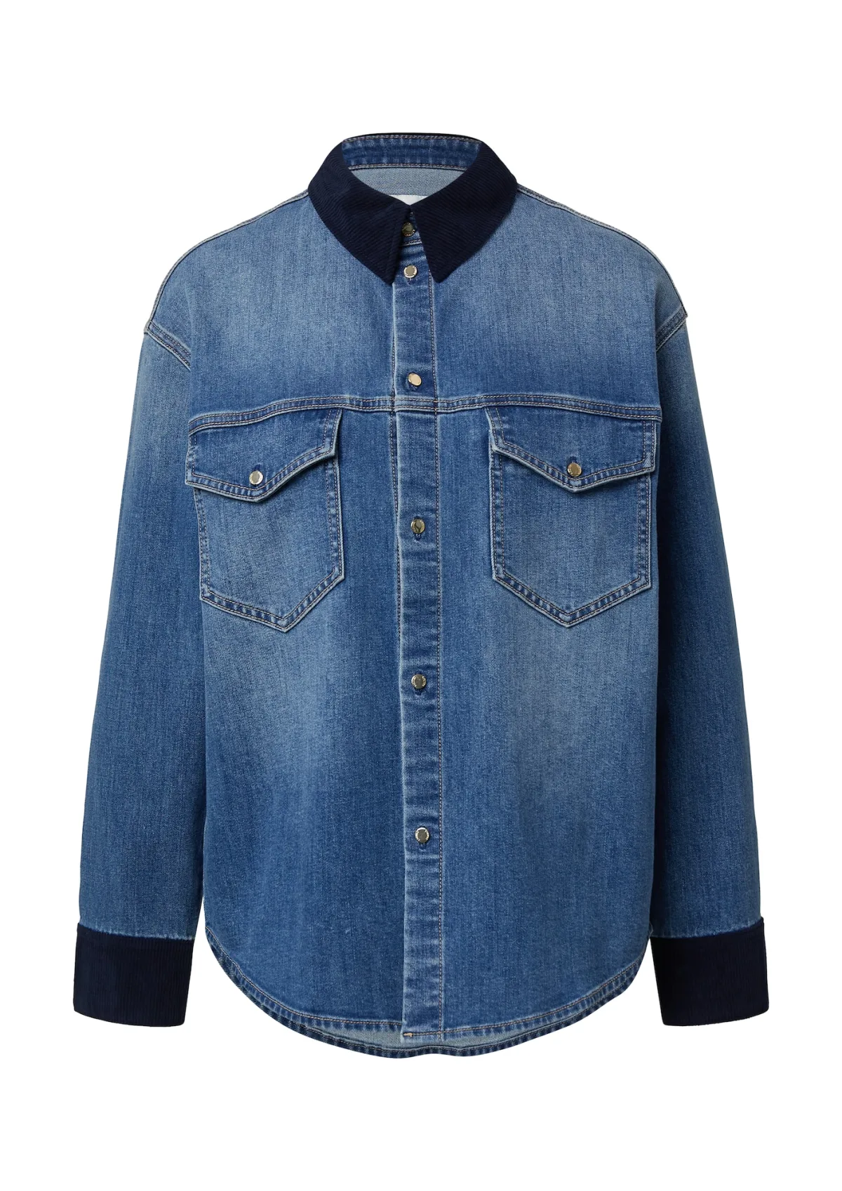 Design: Ronde zoom, Overcut schouder, Turn-down kraag, Borstzak, Contrasterende inserts; Type sluiting: Knoopsluiting; Voering: Niet gevoerd; Materiaal: Denim; Motief: Effen; Extra's: Contrasterende naden, Gewassen effect; Pasvorm: Normale pasvorm