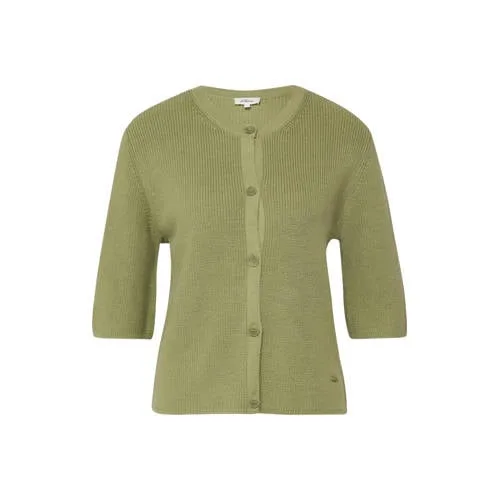 Dit s.Oliver cardigan is een praktische basic voor elke dag. Het kort vallende, olijfgroene vest heeft een ronde hals en een rechte pasvorm, waardoor het langs je lichaam valt zonder strak te zitten. De fijne breistructuur geeft een rustige, verzorgde uitstraling die goed past bij een casual look.Details voor dagelijks gebruik Kort model dat eindigt bij de taille, passend over jurken en hoge tailles Knoopsluiting aan de voorkant, waardoor je het vest open of gesloten kunt dragen Korte rechte mouwen voor een luchtig gevoel, geschikt voor het voorjaar Zachte stof van katoen en acryl Effen olijfgroene kleur die combineert met neutrale en warme tinten Fijn breisel zonder zakken voor een rustige, nette look Regular fit met rechtvallend silhouet voor ontspannen draagcomfortEen vest voor je dagelijkse outfitsDit gebreide vest sluit goed aan bij je dagelijkse garderobe. Draag het over een T-shirt met een jeans voor een ontspannen dag, of combineer het met een top en een rok voor een iets gekledere look. Door de korte lengte blijft je taille zichtbaar.s.Oliver: toegankelijke stijls.Oliver maakt kleding die prettig draagt en eenvoudig te combineren is. Met aandacht voor pasvorm en draagcomfort ontwerpt het merk items voor alledag, die goed aansluiten op een moderne, praktische kledingkast.Een comfortabele, olijfgroene basic die je eenvoudig met veel outfits combineert.