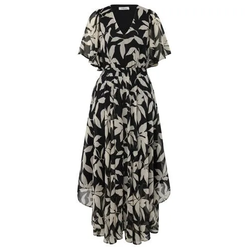 Deze zwarte chiffon midi jurk met bladprint van s.Oliver is een luchtige keuze voor zonnige dagen en feestelijke avonden. De zwart/ecru bladprint geeft een rustige, moderne uitstraling, terwijl de middellange lengte en de soepele stof fijn meebewegen bij elke stap. Door de relaxed fit valt de jurk losjes om het lichaam, zonder te strak te zitten.Speelse details en luchtige stof Gestructureerde chiffon stof met bladprint all-over voor een stijlvolle zomerse look V-hals die het decolleté subtiel laat zien Halflange, wijde mouwen voor extra bewegingsvrijheid en een luchtig gevoel Elastische tailleband met gesmokt detail die de taille zacht accentueert Asymmetrische zoom en volant voor een vloeiende, vrouwelijke beweging Middellange lengte, ideaal als midi jurk voor dagelijks gebruik of een feestje Deels gevoerd met een zachte voering van 100% viscose voor extra draagcomfortVan casual dag tot zomerse partyDeze jurk past net zo goed bij een casual dag met sandalen als bij een feestelijke gelegenheid met hakken. De luchtige chiffon stof maakt de jurk heel geschikt voor de zomer, terwijl de print en de volant onderaan zorgen voor een feestelijke uitstraling.s.Oliver: eigentijdse stijl voor elke dags.Oliver staat bekend om toegankelijke mode die goed aansluit op het dagelijks leven. De collecties combineren moderne trends met draagbare pasvormen, zodat je moeiteloos outfits samenstelt die prettig zitten en er verzorgd uitzien.Een veelzijdige jurk die je garderobe direct meer zomerse stijl geeft.