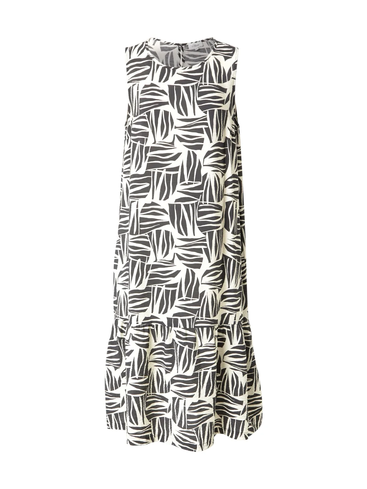 Design: Gevoerde zoom/rand, Figuurnaden; Materiaal: Viscose; Halstype: Ronde hals; Extra's: All-over patroon, Gladde stof; Lengte: 7/8 lengte; Snit: Uitlopend; Pasvorm: Normale pasvorm; Armlengte: Mouwloos