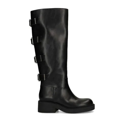 Sacha - Dames - Zwarte multi buckle biker boots met...