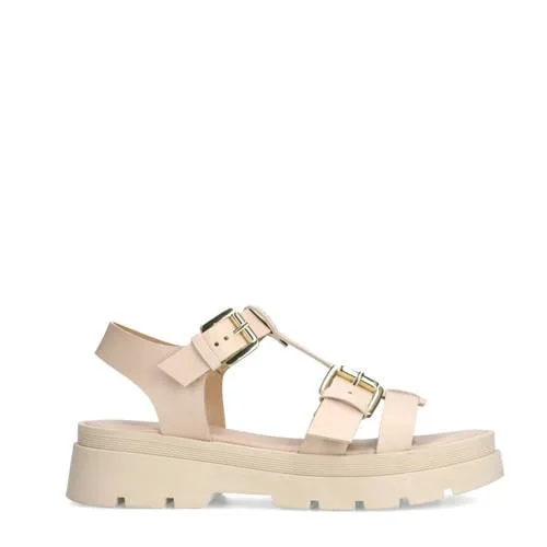 - Bij bol.com kun je Sacha - Dames - Beige leren plateau sandalen met goudkleurige buckles - Maat 41 kopen voor slechts €50,00