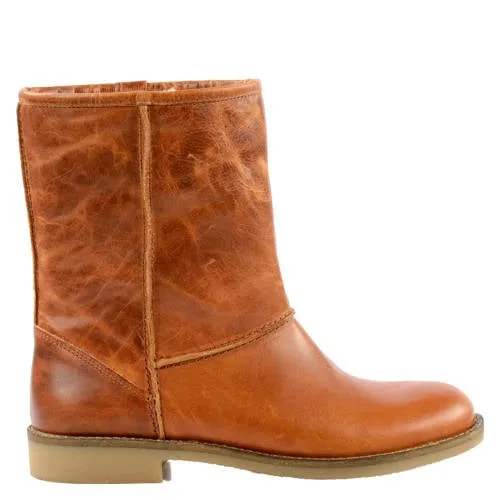 Een dames laars uitgevoerd in gevet leer. Het instapmodel heeft een voering (schapenvacht) en een rubberen zool. De schacht van de laars kan omgeslagen worden.