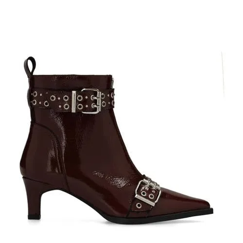 Sacha - Dames - Bordeaux lak leren enkellaarsjes met buckles...