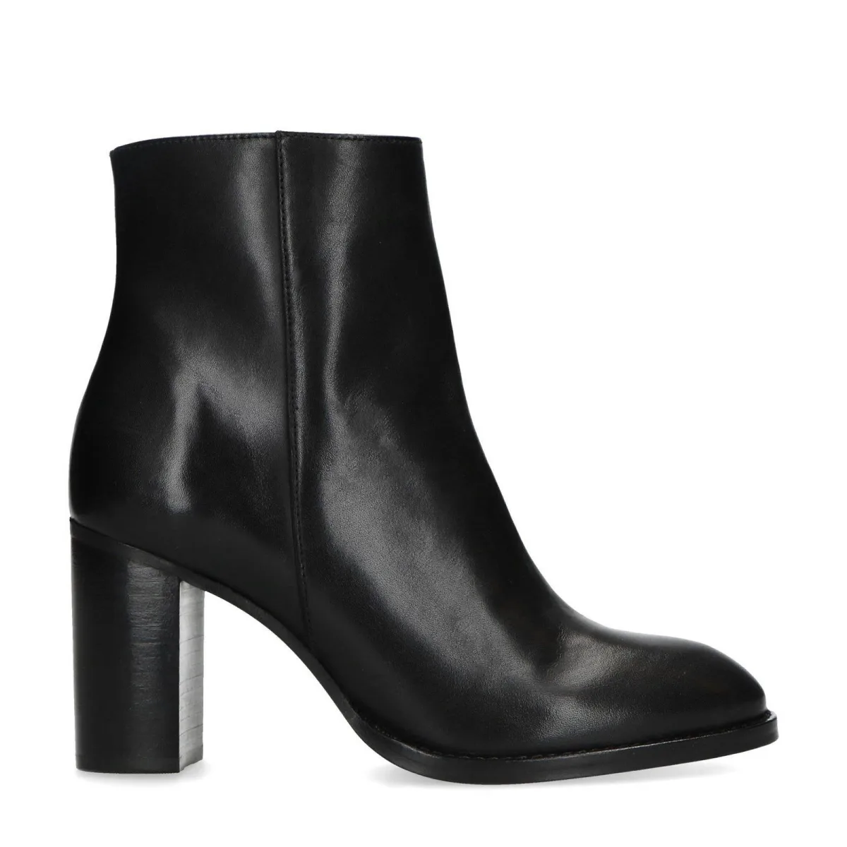 Dames enkellaarzen uit de Women Essentials collectie van Sacha. Deze laarsjes zijn volledig gemaakt van leer en hebben een synthetisch zool. De hakhoogte van de brede, stabiele hak is 8 cm. Je trekt de laarsjes gemakkelijk aan en uit door middel van een rits aan de binnenzijde.