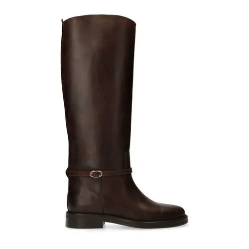 Deze bruine hoge leren laarzen van Sacha geven je look direct een rustige, tijdloze uitstraling. De laarzen hebben een comfortabele hak van 3 cm en een royale schachthoogte van 41 cm, waardoor de laars hoog langs je been valt. Door de schachtomtrek van 40 cm en de large schachtwijdte sluiten ze prettig om je been, zonder te knellen.Details die het verschil maken Bruine hoge laars met effen design, makkelijk te combineren met je garderobe Comfortabele hakhoogte van 3 cm voor dagelijks loopgemak Schachthoogte van 41 cm en schachtomtrek van 40 cm, geschikt voor een vollere kuit Verwijderbaar bandje met gespsluiting, te dragen boven of onder aan de schacht Buitenkant gemaakt van leer voor een stevige uitstraling Voering van synthetisch materiaal en binnenzool van imitatieleer voor een soepel draaggevoel Rubberen zool voor grip op verschillende ondergronden Ronde neus met zachte vormgevingLange laars voor elke dagDeze lange laars past makkelijk in je dagelijkse routine. Combineer hem met een jurkje en panty of draag hem over een skinny jeans. Het verstelbare bandje met gesp zorgt voor een opvallend detail en kun je aanpassen aan je outfit van de dag.Sacha: eigenzinnige schoenencollectiesSacha staat bekend om schoenen met een herkenbare stijl. De collecties volgen de trends, maar blijven tegelijkertijd herkenbaar en draagbaar. Met deze laars kies je voor een model dat past bij een uitgesproken stijl en waar je seizoen na seizoen plezier van hebt.Een lange leren laars waarop je de hele dag prettig loopt en die je outfits net wat meer nadruk geeft.