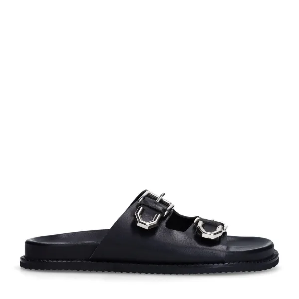 Sacha - Dames - Zwarte leren slippers met buckles -...