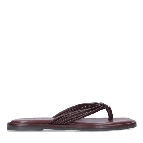 Ga stijlvol de zomer in met deze bordeaux leren teenslippers voor dames van Sacha. De donkerrode kleur geeft je outfit direct meer pit, terwijl de smalle, dunne bandjes zorgen voor een verfijnde uitstraling. Door het gebruik van 100% leer voelen de slippers soepel aan en vormen ze zich naar je voet.Comfort in een minimalistisch design Gemaakt van 100% leer, zowel aan de buitenkant als aan de binnenkant en in de binnenzool Dunne, elegante bandjes voor een subtiele en vrouwelijke look Normale leest die goed om de voet sluit Rubberen buitenzool voor grip op gladde ondergronden Zonder sluiting, je stapt er makkelijk in en uit Bordeaux kleur die mooi combineert met neutrale en warme tintenVoor zonnige dagen en ontspannen momentenDeze slippers zijn ideaal voor warme dagen, een relaxed terrasje of een wandeling langs de boulevard. Combineer ze met een lichte jurk, een korte broek of een luchtige linnen broek en je bent klaar om de deur uit te gaan. Met de juiste leerverzorging, bijvoorbeeld met een spray als Collonil Carbon Pro, blijft het leer langer mooi.Sacha: schoenen met een eigen karakterSacha staat bekend om schoenen die trends volgen en tegelijk een eigen signatuur hebben. In de collectie vind je modellen die goed passen in een moderne garderobe, met aandacht voor materialen en details. Deze teenslippers sluiten daar goed op aan en vormen een praktische basis voor je zomerse outfits.Een goede optie voor wie houdt van eenvoud, comfort en een rijke kleur aan de voet.