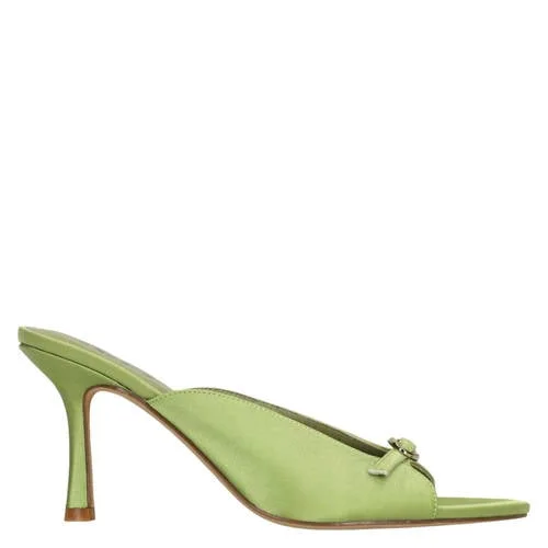 Val op met deze groene muiltjes met hak van Sacha. De satin look in een frisse groentint geeft direct een moderne en elegante uitstraling. Het dunne bandje met gespsluiting zorgt ervoor dat de muiltjes goed aan de voet blijven zitten, terwijl de naaldhak van 8 cm je benen mooi laat uitkomen. De binnenzijde en binnenzool zijn gemaakt van leer, wat soepel aanvoelt en fijn draagt.Details die het verschil maken Satin look in een effen groene kleur voor een stijlvolle uitstraling Dun bandje met verstelbare gesp voor een aangesloten pasvorm Naaldhak van 8 cm voor een subtiel hoger silhouet Normale leest, geschikt voor de meeste voetvormen Leren voering en leren binnenzool voor een zachte touch aan de voet Rubberen buitenzool voor grip tijdens het lopenVoor avondjes uit en feestelijke momentenDeze muiltjes zijn een fijne keuze voor etentjes, feestjes of een avondje uit. De groene kleur combineert mooi met een zwarte jumpsuit, een denim rok of een zomerjurk. Door de open instap schuif je er makkelijk in en uit, ideaal als je snel je look wilt upgraden.Sacha, eigenzinnige schoenencollectiesSacha staat bekend om modieuze schoenen met een eigentijdse uitstraling. De collecties volgen de trends, maar blijven draagbaar voor alledaagse en speciale momenten. Met deze muiltjes haal je een paar schoenen in huis dat zorgvuldig is ontworpen met aandacht voor details en materialen.Een stijlvolle keuze wanneer je jouw outfit net dat beetje extra wilt geven.