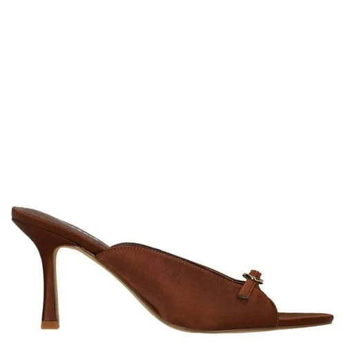 Deze bruine muiltjes van Sacha geven je outfit direct een elegante, moderne uitstraling. Het satijnen bovenwerk in warme bruintint oogt verfijnd, terwijl de slanke naaldhak van 8 cm je benen mooi laat uitkomen. Dankzij de normale leest en leren binnenzijde voelen deze satijnen muiltjes voor dames prettig aan, ook als je ze langere tijd draagt. Het fijne bandje over de wreef is afgewerkt met een siergesp, wat zorgt voor een subtiel accent zonder dat het te druk wordt.Kenmerken van de bruine muiltjes Bruine muiltjes met satin look voor een stijlvolle uitstraling Naaldhak van 8 cm voor een elegante, slanke look Bovenkant van satijn, effen dessin Dun bandje met siergesp als detail Normale leest voor een vertrouwde pasvorm Voering en binnenzool gemaakt van leer voor een zachte touch Rubberen buitenzool voor grip op diverse ondergrondenWanneer draag je deze muiltjesDeze muiltjes passen goed bij een nette broek, een jumpsuit of een jurk. Ideaal voor etentjes, feestjes of een avond uit. De bruine kleur combineer je makkelijk met neutrale tinten of juist met zachte pastels.Sacha rebel collectieDe Rebel collectie van Sacha is gemaakt voor vrouwen die houden van mode met een eigen randje. Eigentijdse designs worden gecombineerd met doordachte details en fijne materialen. Zo haal je schoenen in huis die er niet alleen modern uitzien, maar ook geschikt zijn voor je dagelijkse leven.Met deze bruine satijnen muiltjes voeg je een stijlvol en vrouwelijk accent toe aan je schoenencollectie.
