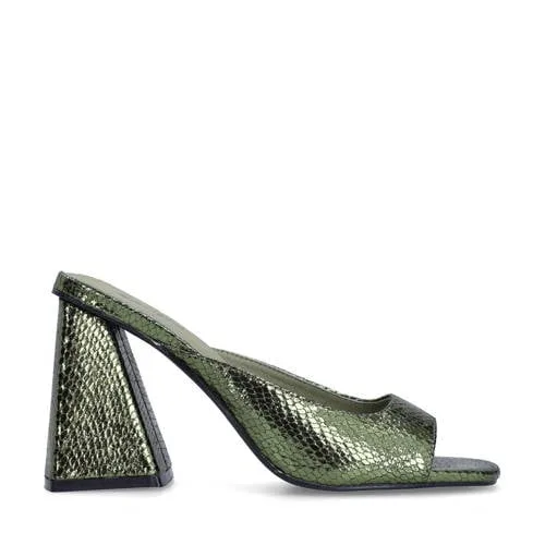 Sacha - Dames - Groene metallic muiltjes met hak -...