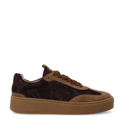 Sacha suède sneakers met ponyhair bordeaux/camel