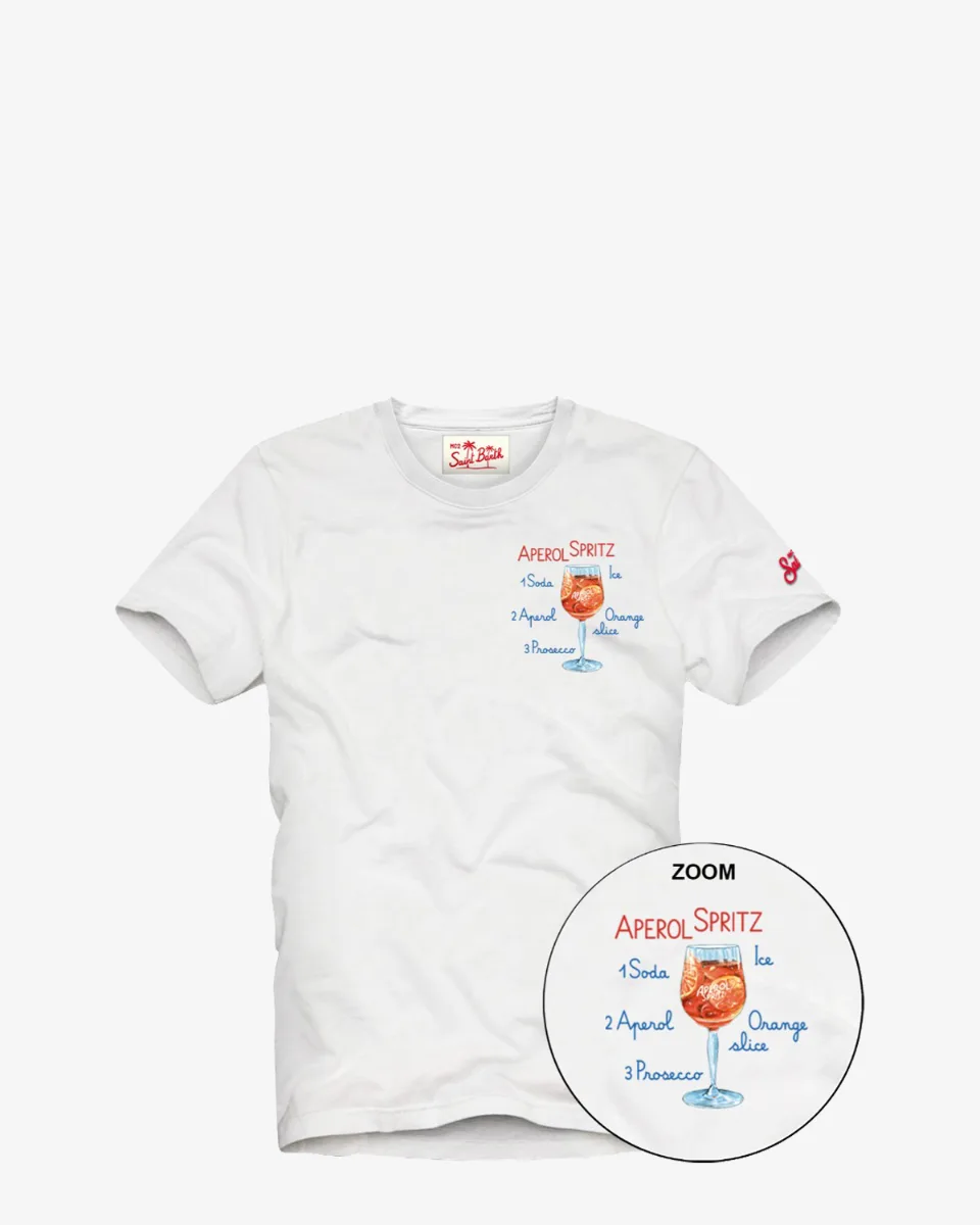 Zomerse vibes in t-shirtvorm. Dit MC2 Saint Barth herenshirt Aperol Spritz van 100% katoen draagt luchtig en comfortabel. De Aperol Spritz-print op de borst geeft een Italiaanse twist die perfect past bij zonnige dagen. De witte basis houdt de look fris en makkelijk te stijlen. Kleur: wit. (White) Onderhoud:• Binnenstebuiten