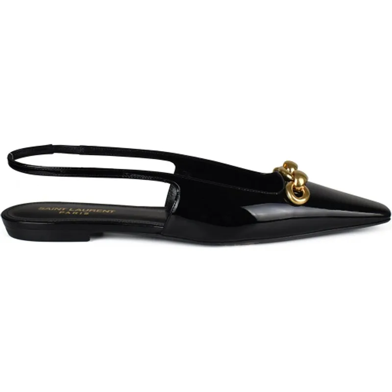 Bladeballerina's van lakzwart leer van Saint Laurent.Ballerina's met sling-back bandjes.Puntpunt.Verguld forçat-kettingornament aan de voorkant.Hak van 0,5 cm.100% kalfsleer.Gemaakt in Italië.