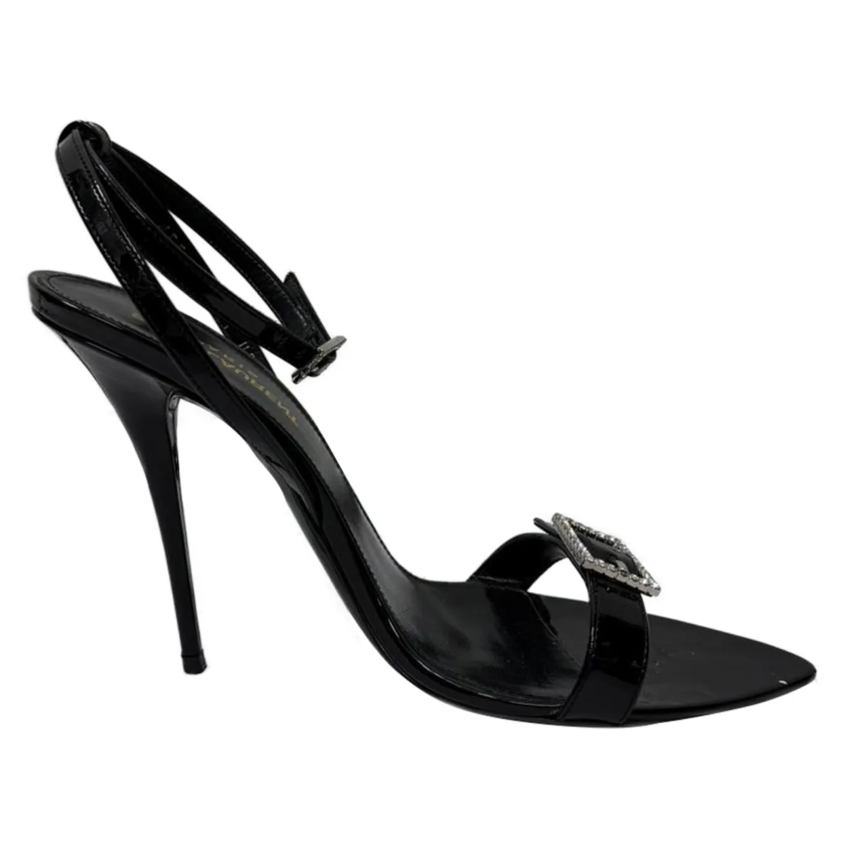 VINTAGE, RRP ALS NIEUW De Saint Laurent Gippy Buckle-Embellished Sandal Heels in zwart patentleer stralen stijlvolle verfijning uit met een moderne, gedurfde twist. Gemaakt van glanzend patentleer, voegt het gedurfde gespsilhouette een statement-making afwerking toe aan een tijdloze vorm. Stylingtip: Draag ze met een op maat gemaakte mini-jurk of cropped wijde broek om de hakken te accentueren en elke avondlook te verheffen. Saint Laurent Gippy Buckle-Embellished Sandal Heels in zwart patentleer Staat: Zeer goed Tekenen van slijtage: Licht gebruikt maar zeer goed onderhouden. Kleine markering op de zolen en vouwen, lichte krasjes op de zolen en hakken. Verpakking: Geen Kleur: Zwart Materiaal: Leer | patentleer Maat: EU | 37.5 Afmetingen: Hakhoogte: 115; Binnenzool lengte: 260 SKU: RFCPUGBSH695516W