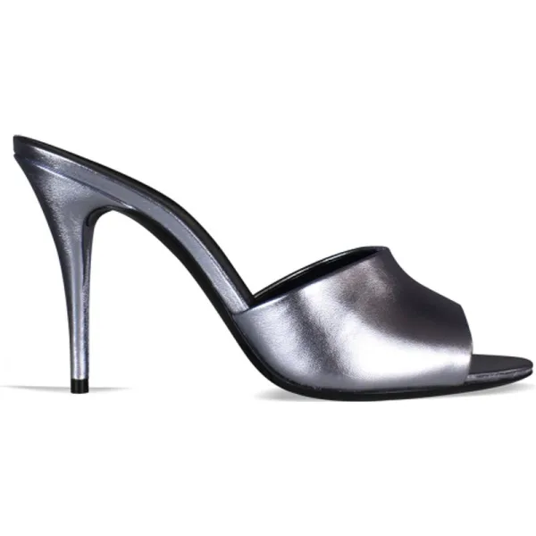 LA 16 Saint Laurent muiltjes van zilver metallic leer.Hakhoogte 9,5 cm.Open neus.Leren zool.Gemaakt in Italië.