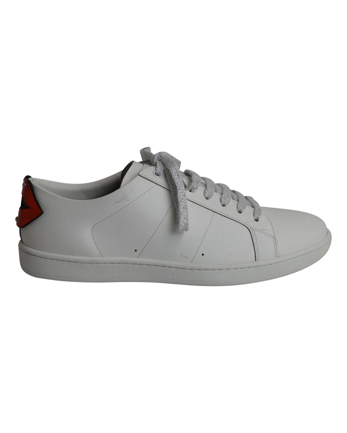 Saint Laurent Lips Classic Court Sneakers in Wit Leer