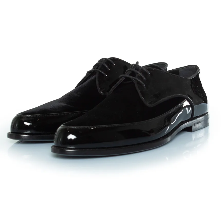 Saint Laurent, veterschoen van lakleer en suède. Het artikel is nieuw - ongedragen. STAAT: nieuw MAAT: 45 BINNENZOOL: 31,5 cm HAK: 2 cm PLATFORM: 1 cm MATERIAAL: lakleer, suède KLEUR: zwart ARTIKELNUMMER: 8573