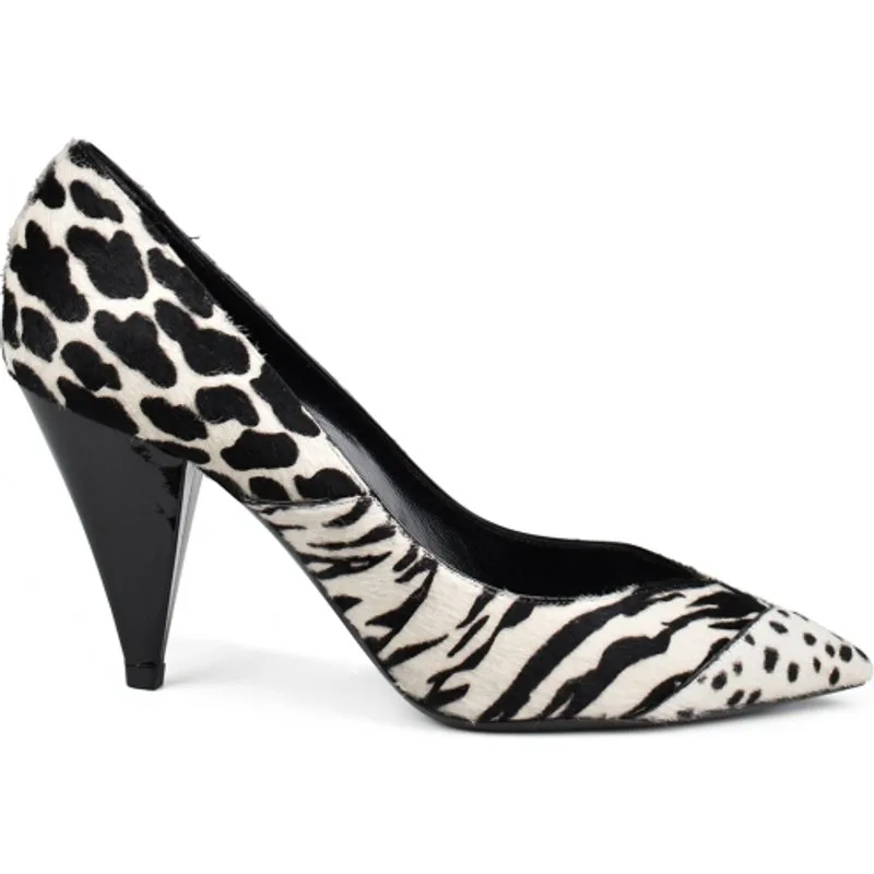 Era Saint Laurent veulenpumps.Witte pumps met zwarte dierenprint.Puntpunt.Zwarte hoge hak.Made in Italy.
