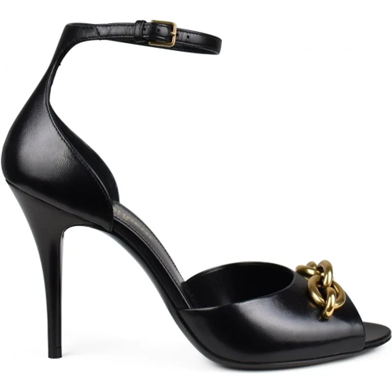 Zwarte Le Maillon Saint Laurent sandalen.Van leer.Gouden schakels aan de voorkant.Enkelbandje met gespsluiting.Zwarte hak.Made in Italy.