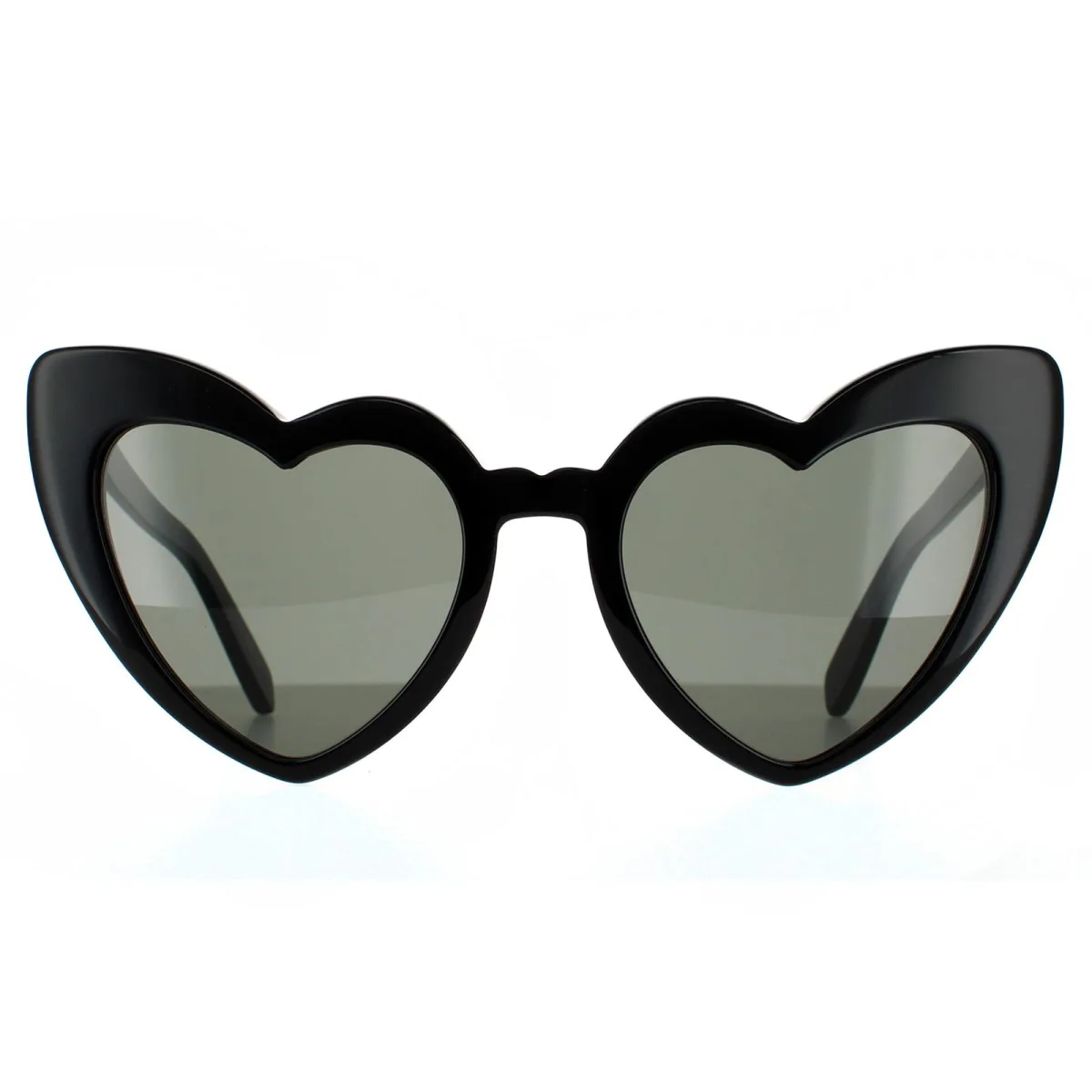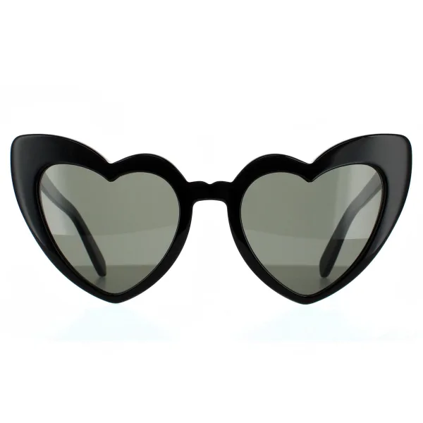 Saint Laurent zonnebril SL 181 Lou Lou 001 Black Gray zijn een unieke en elegante retro kattenoogstijl met hartvormige lenzen. Gemaakt van lichtgewicht plastic voor een comfortabele slijtage en afgewerkt met het Saint Laurent gegraveerde logo op de tempels.