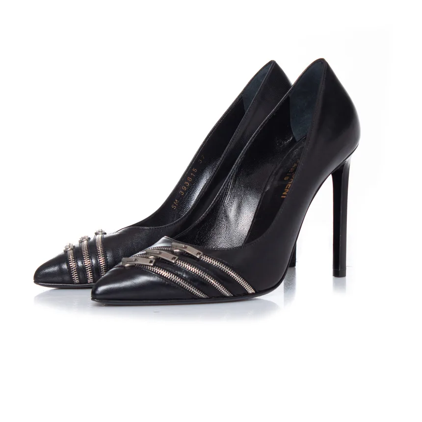 Saint Laurent Zwarte leren pumps met rits