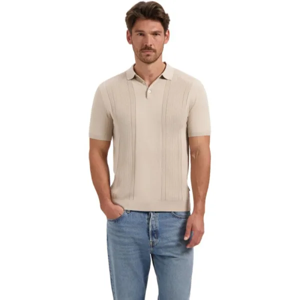 De Friederich-S van Saint Steve is een zandbeige herenpoloshirt dat direct fris en luxe oogt. Het fijn gebreide katoen met ingebreide patronen voelt licht en comfortabel. De regular fit valt ontspannen langs het lichaam, met een nette polokraag en ribboorden. Ideaal voor lente en zomer, stijlvol met een lichte chino of short.