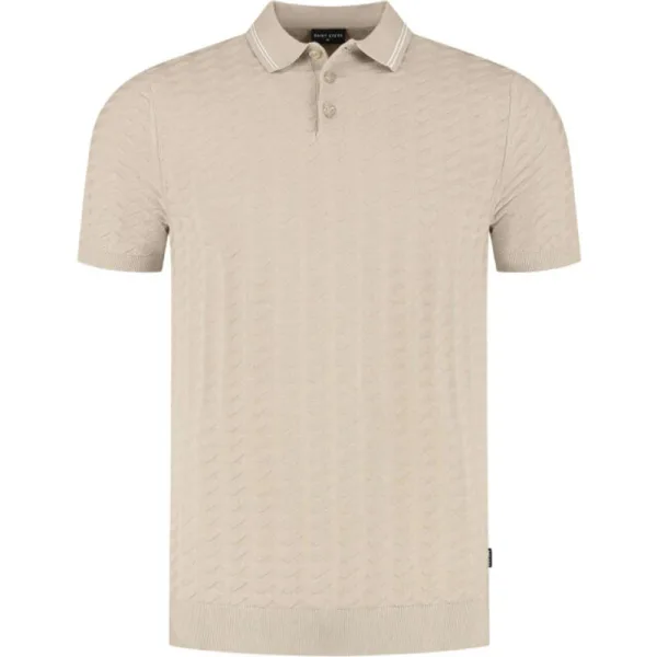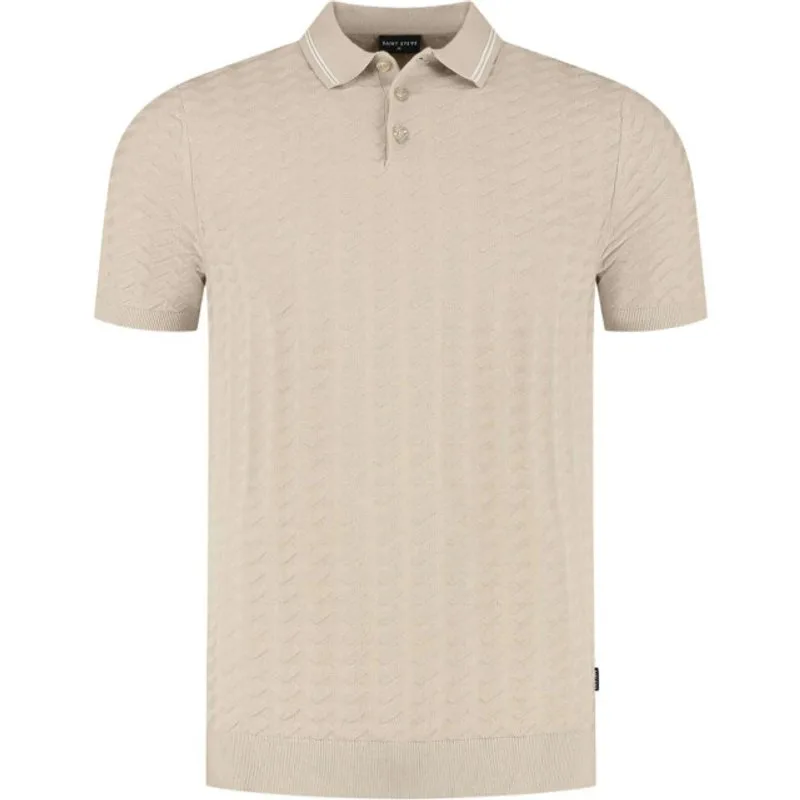 De Michael-S van Saint Steve is een zand-beige herenpoloshirt dat direct fris en luxe oogt. Het fijn gebreide katoen met subtiele ingebreide patronen voelt licht en comfortabel. De regular fit valt ontspannen langs het lichaam, met een nette polokraag en ribboorden. Ideaal voor lente en zomer, stijlvol met een lichte chino of short.